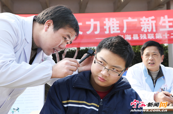 宁海新闻网讯 今年的3月3日是第12个全国“爱耳日”,今年“爱耳日”宣传教育活动的主题是“康复从发现开始——大力推广新生儿听力筛查”。是日,县残联在潘天寿广场开展了有关咨询、义诊活动,医护人员热情地给市民宣讲爱耳、护耳常识等,并分发相关宣传资料。据悉,“爱耳日”历经11年,极大地促进了我国听力残疾预防与康复工作,提高了人民群众的爱耳、护耳意识,有效地减少了听力残疾的发生。 (记者 惠广亮 摄) |