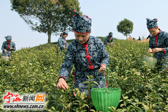 宁海新闻网讯昨日中午,桑洲望海茶基地人头晃动,一色花衣着装的妇女提着小篮,正在茶园里忙碌地采摘刚长出来的嫩茶芽,这标志着我县春茶开始采摘。据了解,由于受天气影响,今年我县春茶采摘时间比去年推迟了半个月左右。(记者李江林摄)