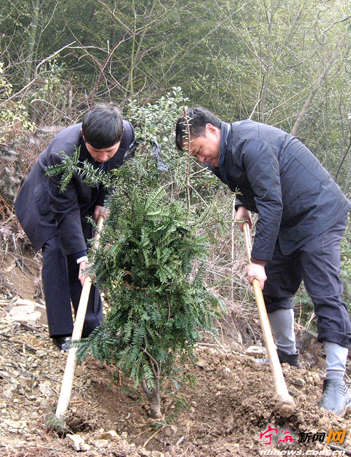 宁海新闻网讯 近日,县农业银行城区支行党支部组织全体党员来到海拔600多米的黄坛镇里天河村的大平头山上,开展义务植树造林活动,为早日实现我县“大森林”“大景区”的建设目标,出一份力。(惠广亮 章亚丽摄)