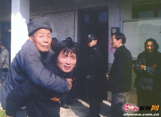 宁海新闻网讯 4月20日是桑洲镇桑洲村的村委会选举日,村民们慎重对待,部分村民则热心地帮助孤寡老人及有残疾的村民去参加选举,场面感人。图为村民应必响背着腿脚不便的80岁老人应可欢走了一里多山路赶去选举。直至当日下午3点,顺利选出新一届村委会成员。 (通讯员应可庆摄)