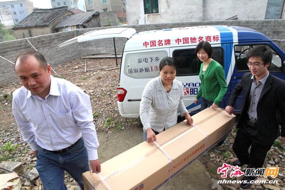 宁海新闻网讯 5月8日母亲节,县妇联领导与华扬太阳能宁海专卖店负责人邬志官把太阳能热水器分别送到黄坛镇、越溪乡困难母亲家中。越溪乡困难母亲李天信来自云南少数民族(苗族),丈夫高度弱视,13岁的儿子去年又得了重病,全家仅靠李天信一人支撑,生活极度困难。华扬太阳能宁海专卖店负责人邬志官知道此事后,主动与县妇联取得联系,表示愿以微薄之力给困难母亲送去一份温暖。图为李天信(左二)高兴地接受免费送给她的太阳能热水器。 (李江林 仇丹娅 摄) |