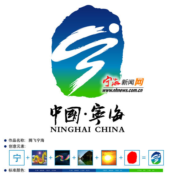 ●标识释义: 以“印章”为轮廓,配以苍劲有力的中国传统书法笔触,构成写意汉字“宁”,有机融入腾飞的“巨龙”,飘扬的“彩带”,抽象的“山水”,朝阳等元素。诠释着“浙东鱼米之乡——宁海”独特的文化内涵与品牌形象。 “龙”是华夏民族崇拜与敬畏的图腾,自古就是“高贵、活力、吉祥”的象征,又是幸运和成功的标志;由此代表着宁海及宁海人健康向上、锐意进取的精神面貌;象征着宁海经济社会发展的腾飞。同时,汉字“宁”飘逸灵动,犹如飞扬的“彩带”,代表着宁海人大气、正气、和气的性格特征;寓意宁海人民热情欢迎四方宾客。其次,宁海也有多处以龙命名的地方,如跃龙山、跃龙街道等。蓝绿渐变色犹如抽象的“山水”,突出宁海“山海兼优、和谐生态、人杰地灵、宜居宜业”的滨海城市特征,给人无限向往与遐想。再者,印章作为中国传统书画艺术和传统文化不可分割的一部分,镶嵌其中,烘托出宁海深厚的文化底蕴。图形下端配以国画大师潘天寿书法字体,使得标识更具文化韵味,进一步传达出宁海名人辈出;象征着宁海及宁海人热爱科学、崇尚学习、人与自然和谐相处。 整体图形简洁明快,动静结合,易识别与传播。蓝绿渐变色的搭配,和谐美观,突出了“海天一色,绿色生态”的概念,象征着宁海越来越美好。蓝色代表天空,寓意辽阔,包容与发展;中蓝代表大海,寓意中和,宁静;绿色代表草地,寓意健康与生态。 |