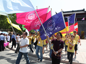 可爱的小导游正全神投入讲解工作,游客们听得可认真了! 宁海新闻网讯“大家好!现在在我们眼前的是明经堂,在进入明经堂之前我们首先来看一下墙上的这些石花窗。这扇石花窗上的图案象征着‘福’、‘财’、‘禄’,‘蝙蝠’象征福气,‘寿星骑鹿’象征长寿,‘刘海戏蟾’象征财富……”在游人如织的前童古镇里,一声声清脆的讲解此起彼伏。在前童镇团委的组织下,前童小学的8名学生在古镇景区内当起了志愿“小导游”,为来自各地的游客讲述古镇的历史文化背景。 小学生们佩戴着红领巾,头戴志愿者小红帽,手拿小喇叭,分别作为职思其居、大祠堂、民俗博物馆等8个景点的“导游”,一路上领着游客前往各个景点,将各自精心准备的讲解词说给游客听,吸引了许多路过的游客驻足观看,帮助他们了解古宅、古道的历史内涵。小导游们从容淡定的表现和流利的讲解也受到了众多游客的赞赏。来自上海的陈女士和她的几位朋友是来参加5·19开游节的,专程来到前童欣赏古镇风情和文化。“这些小朋友讲得很好,很能干,我们都是跟着他们参观各个景点的。”陈女士说。 前童小学老师冯梦楠告诉笔者,近阶段,“小导游”不仅利用课余时间反复练习讲解,还参加了培训讲座,期待能在5·19活动期间更好地服务游客。她还表示,通过这样的活动不仅培养了学生语言表达和应急能力,也让生活在古镇的学生了解家乡的历史文化,这些生动的实践经验是在课堂上难以获取的,对学生来说是一次难忘的“社会课程”。(通讯员严洁) |