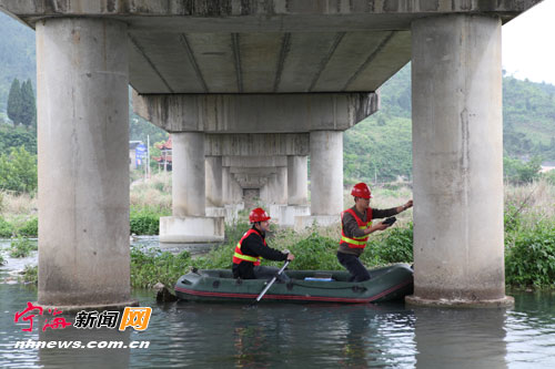 宁海新闻网讯 为确保县道桥梁的安全通行,连日来,县公路管理部门委托市有关具备桥梁检测资质的单位对县道112座桥梁开展安全大检测,预计整个检测工作在下月初完成。图为宁波市交通建设工程试验检测中心的技术人员正在对县道梁书线上的前溪桥桥墩进行检测。