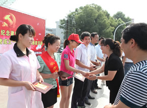 宁海新闻网讯 日前,县物价监督检查分局工作人员正在给红枫市场10家明码标价最佳示范户授牌。为规范市场管理,树立商品价格标杆,经市场综合考核,广大经营户推荐,最终在近400户经营户中评出邬志官、应端强等10户明码标价最佳示范户。 (李江林 徐炳文摄)