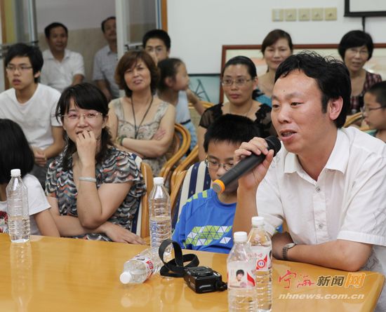 爸爸王斯朝,妈妈汤美秋是今年宁海高考家庭里最幸福的家长了。说起儿子的成长过程,爸爸讲了许多故事,感慨很多,妈妈后来激动得讲不出话来,激动的情绪也感染了现场所有读者,全体读者给她送上了热烈的掌声。