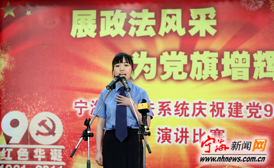 宁海新闻网讯 6月30日,县政法系统庆祝建党90周年“展政法风采为党旗增辉”演讲比赛在县法院举行,政法系统的14名代表参加了比赛。经过两个多小时的紧张角逐,法院代表队石羽获比赛第一名。县委常委、政法委书记金伟平出席并为第一名颁奖。 (记者李江林摄)