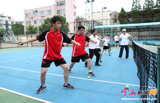 宁海新闻网讯 昨日,县体育局网球管理中心网球场里,参加网球培训班的青少年学员正在网球教练的指导下,认真领会打网球的基本动作要领。自李娜法网夺冠后,网球也有成为市民运动休闲新宠的趋势,县体育局网球管理中心网球培训班也是很火爆,其中青少年学员占绝大多数。“网球对发力技巧、回球姿势都特别讲究,一般靠自己摸索会比较难,因此专业培训显得很重要。”一位网球教练表示。(记者惠广亮摄) |