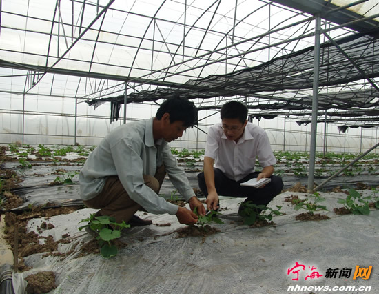 金伟兴与合作社工作人员一起观察哈密瓜生长情况 宁海新闻网讯 西瓜是我县瓜农的主要经济作物,哈密瓜是近年来在我县新兴起的瓜类品种,两者都是经济效益较为显著的瓜类品种,很受我县瓜农青睐。如何在有限的土地上,让西瓜和哈密瓜实现最佳搭配,为农户带来最大的效益? 从2010年起,长亭果蔬专业合作社在浙江省农技推广基金会宁海执行部的支持和县农技推广总站农艺师金伟兴的指导下,开始“春季西瓜—秋季哈密瓜”大棚栽培模式试验与示范推广项目,力图为宁海瓜农开辟出一条新路。 筛选西甜瓜连作最佳模式 “‘春季西瓜—秋季哈密瓜’大棚栽培模式试验示范项目最重要的任务就是筛选出最适合宁海,土地利用率最高,经济效益最好的西甜瓜连作模式。”金伟兴说。 据了解,西瓜和哈密瓜都是宁海瓜农的致富宝贝,全县大棚西瓜种植面积最多时达1.8万亩。2007年,我县从新疆引进适合于南方种植的哈密瓜新品种进行小面积试种,并取得成功,很好地填补了南方市场,经济效益明显,很受农户欢迎。当年种植112亩,2008年650亩,2009年4260亩,2010年达7600亩。短短几年时间,我县的大棚哈密瓜发展迅速,已经成为主要的种植品种。 目前,我县瓜农对西瓜与哈密瓜连作主要采取三种方式,一是春季西瓜—秋季哈密瓜,二是主导大棚西瓜,三是主导哈密瓜。“三种模式各有千秋,我们试验的目的就是将西瓜和哈密瓜的优势结合起来,探索出一种合适的连作模式,将瓜农的效益发挥到最大,这也是这个试验的意义所在。”金伟兴说。 |