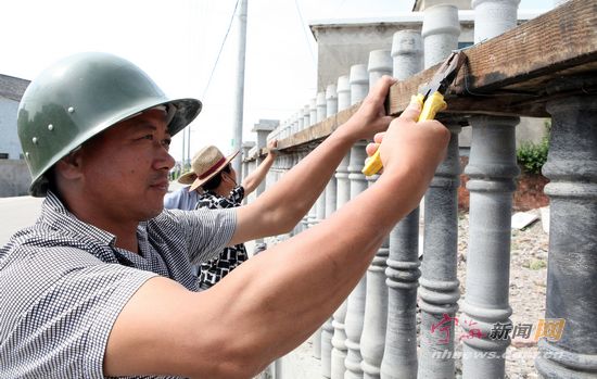 宁海新闻网讯 日前,长街镇翁家自然村施工人员对开放式围墙柱进行了灌浇加固。为进一步加大穿村公路两侧的庭院美化,翁家自然村投资20余万元,将沿路两侧500多米长的农家封闭式围墙统一规划打造成开放式围墙,旨在通过靓丽的农家围墙,美化庭院、美化村庄。预计该工程于本月底完工。(李江林 苏敏萱 摄) |