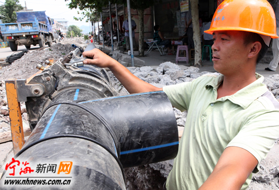 宁海新闻网讯 日前,宁东水厂施工人员正在青珠村一户一表给水工地上熔接水管。为切实做好乡镇村庄一户一表给水工作,今年6月,县水务集团投资291.8万元对长街镇青珠村进行水网改造,并重新铺设口径110mm以上水管5000米,受益人口近3000人,整个工程将于今年10月份完工。 (李江林苏敏萱摄) |