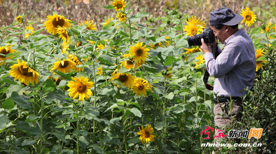 宁海新闻网讯 前日,一名摄影爱好者正在许家山专心拍摄刚刚初展笑颜的向日葵。为进一步发展旅游业,让游客到许家山度假休闲增添新的看点和欣赏点,今年茶院乡许家山特别在山坡梯田上种植了300亩观赏型向日葵,近日已经开始陆续开花。据有关人员称,由于山高、种植等原因,山上的向日葵开花时间要比一般的晚些,预计要到本周末(22日),梯田上的300亩向日葵才能盛开迎接八方游客。(记者惠广亮摄) |