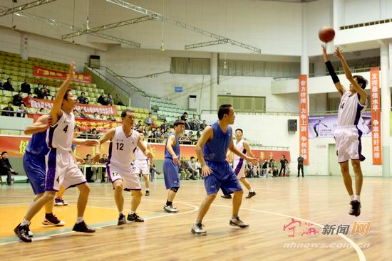 宁海新闻网讯 10月25日,“昭阳电脑杯”宁海县第五届乡镇(街道)篮球邀请赛在县体育馆开赛。本次比赛为期7天,由县体育发展中心主办,县篮球协会承办,共有长街、胡陈、桥头胡等11个乡镇(街道)组队参加比赛,将在本月31日晚举行颁奖仪式。图为比赛首日桑洲代表队对阵胡陈代表队时的场景。 (记者惠广亮摄) |
