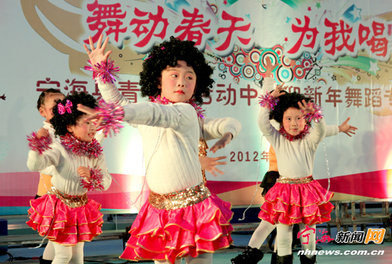 宁海新闻网讯 在即将辞旧迎新的美好时刻,县青少年活动中心舞蹈班的小朋友们欢聚一堂,举行了“舞动春天,为我喝彩”迎新春舞蹈专场演出。他们开启了快乐源泉,开心地走上绚丽多姿的舞台,共同收获新年的祝福和希望。(惠广亮许碧华摄)