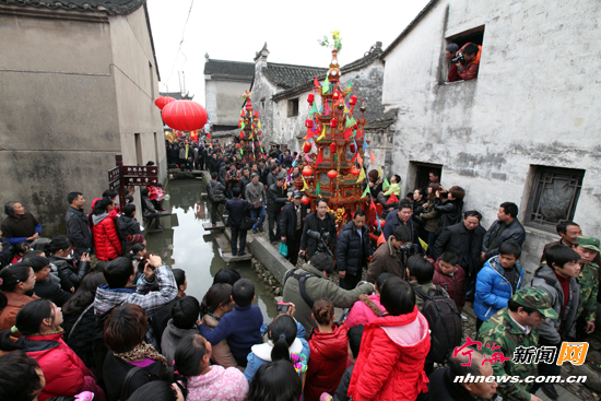 宁海新闻网讯 宁海以正月十四为元宵节,俗称“十四夜”正月十四十五两天,前童举行庆元宵行会活动,来自南京、上海、杭州、温州、丽水、宁波等地的游客纷纷相聚古镇前童,盛看元宵佳节鼓亭抬阁为特色的前童行会活动。(记者李江林 通讯员严洁)