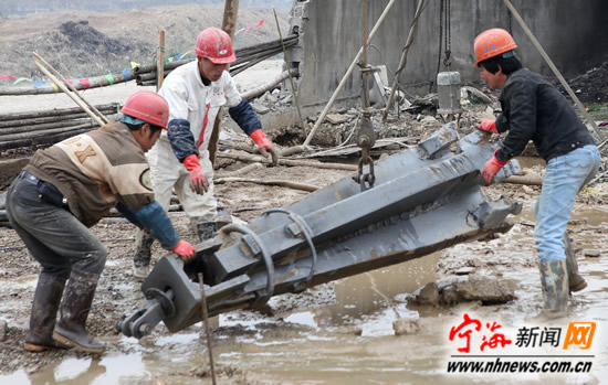 宁海新闻网讯 为进一步提高城市防洪能力,有效规避雨水洪峰,实现雨水循环利用,使颜公河流域防洪标准达到50年一遇,近日,颜公河干流调蓄池一期工程开工建设。该工程总占地面积63.382公顷,概算总投资为47077.46万元。图为调蓄池闸门建造工地上,施工人员正在进行打桩作业前的准备。(惠广亮金晓丽摄) |