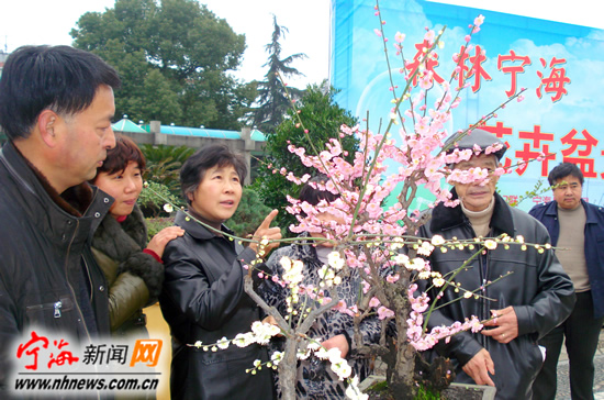宁海新闻网讯 昨日上午,由县妇联、园林管理局、东海社区联合举办的以“森林宁海美丽东海”为主题的家庭花卉盆景展在一休公园举行,社区50余户居民踊跃参加。梅花、九头兰、澳洲杉、五针松、榆树等200余盆造型各异的花卉盆景吸引了众多的观赏者,为社区的广大花卉、盆栽种植爱好者提供了相互沟通与交流的平台,增进邻里之间的感情,营造了温馨、和谐的氛围。图为梅花盆景引来了居民驻足观赏。(李江林严利群摄) |