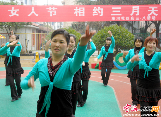 “美丽女人节,相约三月天”,在这个“三八”特别的节日之际,跃龙街道车河社区妇女们欢聚在一起唱歌跳舞,共庆属于自己的佳节。(姚亮华建平摄) |