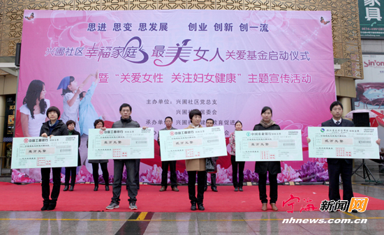 宁海新闻网讯 近日,跃龙街道兴圃社区“幸福家庭最美女人”关爱基金正式启动。该关爱基金首批款项由县信用联社、县科技园区管委会等五家社区共建单位共同出资,将专款专用于社区妇检、健康讲座、健康舞培训等提高辖区妇女健康水平方面的开支。 (惠广亮张琼摄)
