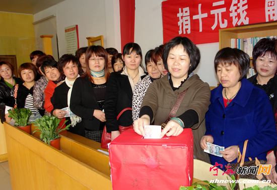 宁海新闻网讯 连日来,跃龙街道妇联组织辖区妇女干部开展向宁波市“康乃馨救助基金”捐款活动,短短一个星期,捐款就达数千元。“康乃馨救助基金”设立4年多来,已为全市50多名患妇科恶性肿瘤的特困妇女提供了1万至5万元不等的救助,使她们得到了及时有效的治疗。(惠广亮华建平摄)