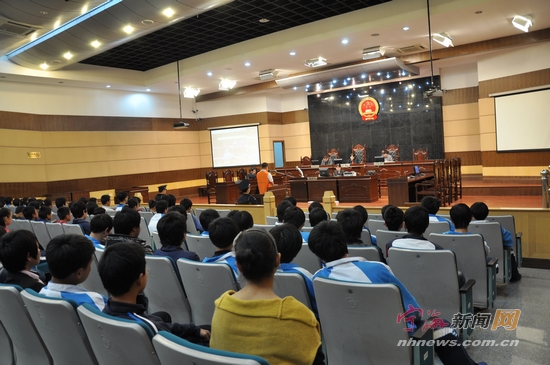 4月11日上午,县法院第一审判庭内,刑庭法官正在对一起盗窃案件进行当庭宣判。当天,潘天寿中学、茶院中学、越溪中学百余名学生旁听了庭审。庭审结束后,学生们表示能现场感受庭审过程,心情激动,印象深刻,更增强了自身的法律意识。图为庭审现场。 (通讯员 金萍 摄)