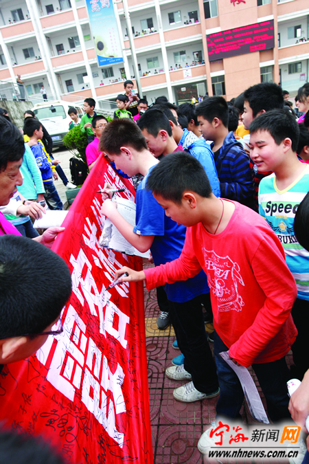 5月3日下午,我们走进江西省上饶市弋阳县方志敏中学,热情的学生们争先恐后地在横幅上签名支持。
