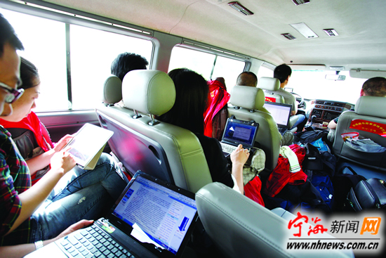 这支志愿小组里始终活跃着三名宁海记者的身影。既要当霞客游线申世遗的参与者,向沿线节点城市的人们积极宣传倡议;又要身兼记录者,挖掘采写各地的新闻亮点和这一路发生的故事……我们的忙碌可想而知。每一个人的发条都被拧得紧紧的,晚上熬夜到凌晨二三点,稍事休息到清晨六七点又要出发。白天采访、晚上写稿,每日的行程安排得满满当当,休息的时间被侵占压缩到最少。没有午休,没有周末,多的只是深夜孤灯下不间断敲击键盘的声音,多的只是在长途车程中颠簸着的微微鼾声。