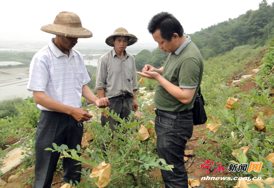 | 县林特总站专家为蓝莓搭脉问诊 |