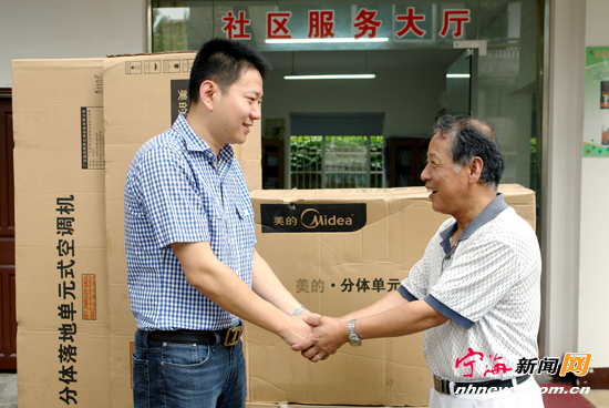 宁海新闻网讯 日前,跃龙街道北星社区共建单位宁波万安阀门股份有限公司捐赠价值上万元的2台立式空调给社区老年人乒乓球活动室,让他们在炎炎夏日也能享受“国球”乒乓带来的乐趣。 (惠广亮 华建平摄)