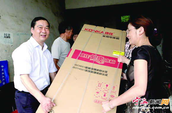 ![]() 宁海新闻网讯 连日来,跃龙街道党工委组织辖区部分县党代表开展情系困难群众送温暖活动,以此庆祝建党91周年。日前,县党代表、宁波中天纺织有限公司董事长胡立功出资2万元,特地购买了一批液晶电视机、冰箱和洗衣机等家用电器,与街道领导及部分县党代表一起先后来到滨溪、塔山、杏树、县前等社区8户贫困老党员、先进志愿者家中,以感谢他们为党的事业和社会和谐作出的贡献。(李江林 华建平 林应 摄) |