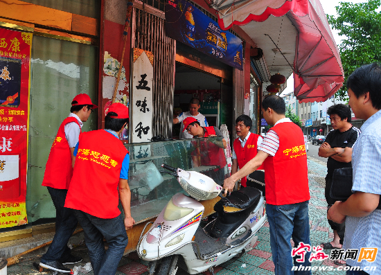 志愿者主动帮助商户清理杂物。