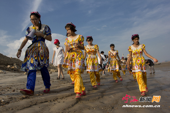 文/水玲玲 陈静珠 图/缪军 在中国辽阔的版图上,一片碧海,一片沙漠,相隔万里,遥遥相望。因为宁海一位“90后”女孩胡惊雨,“沙漠”结识了“碧海”。十日的看海之旅、三个月造梦时间、两学期支教生涯……胡惊雨用爱心让梦想照进了现实,也凝结了两族人民、两座城市的深厚情谊。 在大多同龄人还对人生规划懵懂无知时,胡惊雨一个人背着行囊深入新疆维吾尔自治区吐鲁番地区鄯善县达浪坎乡一中(又名玉书中学)义务支教去了。2011年9月,她只身奔赴边疆,在沙漠的高温与风沙中,绽放出了一方讲台、一支粉笔的青春之花。她用实际行动实现了自己的梦想,更把梦想的种子播到了沙漠孩子的心田。宁海有海,达浪坎却触不到浪,于是就有了看海梦。今年3月底,她在网上发起“沙漠孩子寻海梦”公益项目,想让常年生活在库姆塔格沙漠边缘的孩子们到她的家乡看一次大海,实现他们对那片蓝色的向往。爱心在行动,美梦可成真。“沙漠孩子寻海梦”公益项目得到了众多热心市民和网友的支持,共有100多人捐赠5.8万元。7月1日晚,25名新疆孩子从鄯善火车站乘上了列车,开启“看海之旅”。而其中的重点一站,就是胡惊雨带着这些昔日的学生到她的家乡——宁海看看。期间,他们观赏西店石孔双山,坐船游览强蛟海景,访问老师的母校西店中学,沿途留下了很多难忘的记忆和美好的画面。让我们一起品读这个火热夏日里的蓝色故事。 ![]() 胡惊雨(左一)带着孩子们梦圆宁海。 42小时,4077公里:我们奔向大海 7月1日晚上8点,25名新疆孩子从鄯善火车站出发,乘坐T54次列车驶向心中的那片海。对他们来说,手中的车票是一把金钥匙,能打开大门去看看外面的精彩。在送别时,一位家长激动地流下了眼泪,“走到外面看看,是家里几代人的夙愿。” “这是他们第一次出远门,一上火车就非常激动,晚上11点多仍然在兴奋中不愿入睡,早上6点多就开始热闹起来了。大家围坐在一起聊天说笑,话题都是围绕着‘海’。”胡惊雨笑着同记者介绍路上的事。随行的达浪坎乡一中校长斯迪克·尼亚孜证实了这一说法,“之前学生们到过最远的地方,是距家280公里的乌鲁木齐。”吐鲁番地区气候干燥,常年无雨。看看祖国的大海,不仅是孩子们心中的梦想,更是所有沙漠儿女植根心底的渴望。 7月2日中午,车厢里突然响起稚嫩的歌声。“你曾对我说,相逢是首歌,分别是明天的路,思念是生命的火。相逢是首歌,歌手是你和我,心儿是永远的琴弦,坚定也执着……”原来,四个可爱的新疆小姑娘费劲说通了列车长,偷偷给胡惊雨老师送上这一份惊喜。听着广播里那不太流利的歌声,当时正在给学生切哈密瓜的胡惊雨顿时泪流满面。过去一年援疆支教生活的点滴画面一帧帧在她的脑海闪现,眼前仿佛又看到自己第一次踏足达浪坎的情景:“进乡的路上,我满眼看到的是干巴巴的土地,种着成片棉花,周边则是望不到边际的戈壁沙漠,风沙打在脸上生疼生疼的。这一切,跟我从小熟知的江南水乡、滨海城市完全不一样。”而现在,这些常年生活在漫天风沙中的孩子们,也跟一年前的她一样,要去迎接一个全然不同的感受。火车上,胡惊雨和女学生们涂起了海娜(一种特殊的植物粉末,和水混合后,涂抹在指甲上会让指甲变成橙红色),编起了小辫,穿起了民族服饰,仿若迎接节日一样盛装打扮。看在眼里,就能明白,这些孩子们是多么珍惜这次看海之旅。 |
