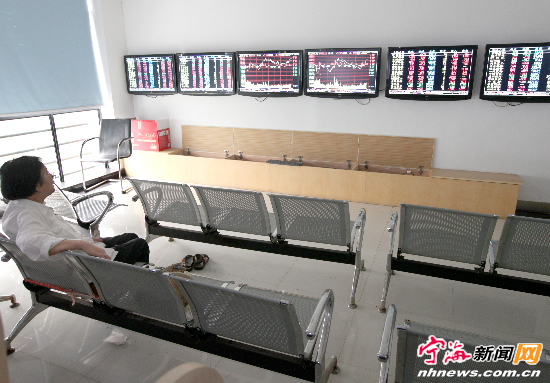 宁海新闻网讯 昨日下午,光大证券宁海营业部散户室里,一名股民正在观察显示屏上的股市行情变化。7月16日,股市又现百股跌停,108只跌停股中大多数为业绩地雷,引起了市场恐慌情绪的蔓延,股市显得冷冷清清。(记者姚亮摄)