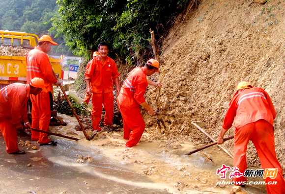 宁海新闻网讯 受强台风“海葵”的影响,一市镇越沙线一处盘山公路上发生山体滑坡,山上泥石冲到了公路上,给过往车辆带来严重安全隐患。为确保道路安全畅通,昨日上午,县公路局及时组织人员进行水沟和泥石清理,经过3个多小时的努力,终于将泥石流清理干净。(李江林 周如歆 摄)