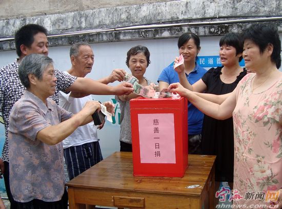 宁海新闻网讯 近日,杏树社区开展以“人人踊跃捐善款、凝聚爱心创和谐”为主题的慈善一日捐活动。居家养老服务中心的老人们、社区党员、居民和志愿者积极加入捐款行列,为贫困学生和困难家庭献上一份爱心。 (李江林 张丽琴 摄)