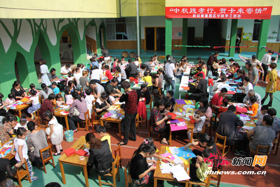 宁海新闻网讯 为引领孩子用灵巧的双手,以最朴实、真诚的文字传达对长辈的中秋祝福,让孩子们从小懂得“知孝理、讲孝德、践孝行”,在传统的中秋节到来之际,县跃龙中心幼儿园春蕾园区开展了亲子贺卡制作、展示、寄送活动。 (姚亮施海晓摄)