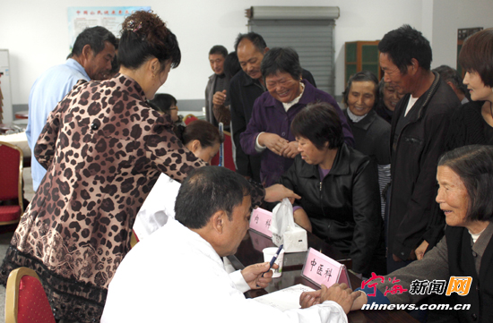宁海新闻网讯 日前,民进宁海支部组织各大医院的专家来到桥头胡街道涨家溪村,开展下乡义诊送医送药活动。在义诊现场,专家们为前来就医的百余名村民把脉、开方、量血压,解答各种医疗保健咨询。据统计,此次活动共开具药方百余帖,送出药品价值2000余元,受到了村民们的热烈欢迎。 (李江林 华立峰摄)