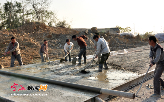 宁海新闻网讯 日前,施工人员正在田交朱村至三门湾新区创业路连接线进行道路硬化。为方便广大群众出行,力洋镇投资近400万元对田交朱村至三门湾新区创业路进行道路硬化,此路也是力胡线通向三门湾新区的一条交通捷径。预计该道路本月底即可完工。 (李江林李品锋摄)