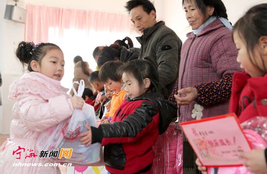 宁海新闻网讯 1月17日,县中心幼儿园“七色花”慈善基金会组织小朋友与家长分赴一市、桑洲等地,与当地的孩子开展一对一结对,进行了学习手工制作、节目表演、赠送新年礼物等联谊活动,还特别给困难家庭的孩子送上了价值37500元的慈善慰问金与慰问品。 (惠广亮古月摄)