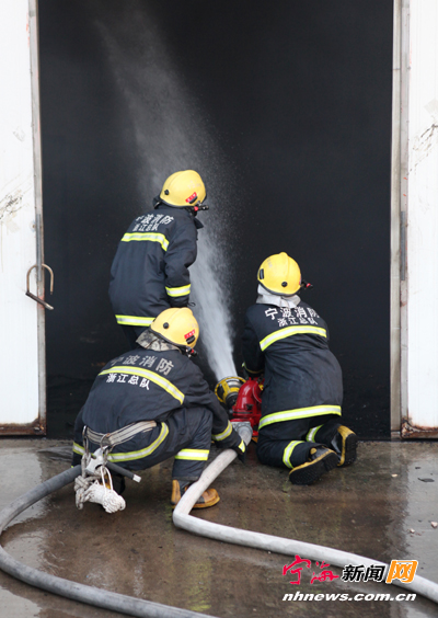 宁海新闻网讯 昨日下午,位于县科技园区的康迪泰克传动系统(宁海)有限公司发生火灾,该公司的一个大型生产车间被烧毁,损失严重,火灾事故的原因正在进一步调查中。图为消防人员正在现场灭火。(记者惠广亮 网友一直折腾摄)
