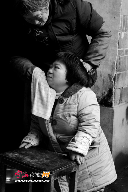 桑洲镇麻岙村的王秀纪今年已经67岁了,本该是安享晚年之时,但她却要一刻不停地忙碌着照顾“女儿”陈丹荷。陈丹荷是王秀纪老人收养了30年的弃婴,已成年的她,身高只有88厘米,眼睛高度近视,双腿残疾,生活不能自理。