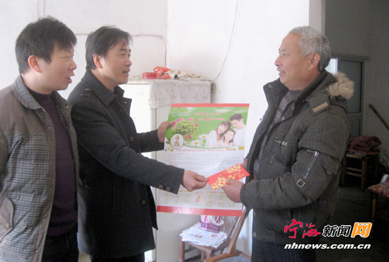 宁海新闻网讯 在新春佳节即将来临之际,黄坛镇组织人员对辖区的困难计生户、独生子及双女户、留守儿童等家庭,送去了慰问金、慰问品等,让他们感受到党和政府的关怀。近年来,该镇努力推进惠民计生,致力于开展生育关怀活动,以转变群众生育观念为着眼点,营造和谐的计生工作氛围。 (惠广亮章亚丽摄)