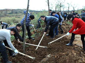 岔路镇天河村农村指导员最近邀请了县书法家协会部分骨干进村为村民义务写春联。(通讯员赵安炉摄)
