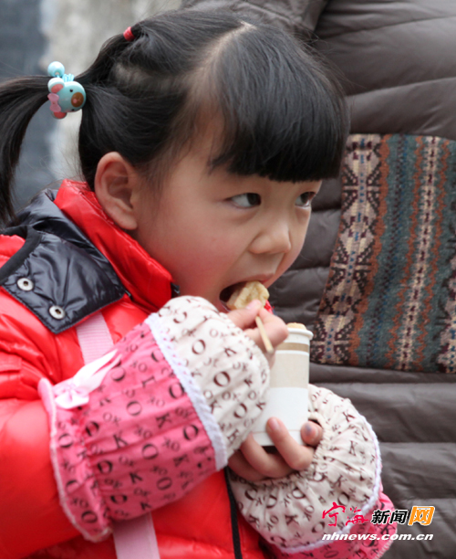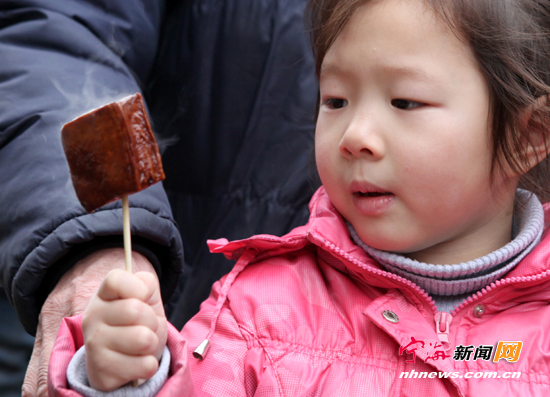 新年里,孩子们品尝着各种风味食品,感受着浓浓的年味。 (记者惠广亮摄)
