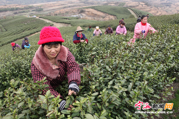 宁海新闻网讯 昨日,近百名采茶女工正在宁海县望府茶业有限公司位于茶院乡的4号名茶基地里采摘春茶乌牛早。由于近期气温持续回暖,今年我县的名茶开采时间比往年提前了一个星期左右,各地茶农将抓住春茶行俏的时机,抓紧采茶制茶上市。(记者 惠广亮 摄)