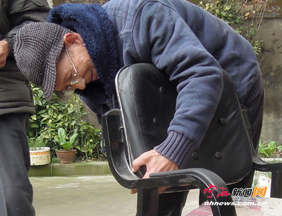 宁海新闻网讯 跃龙街道园丁社区的徐兴曹老人是一名退休工人。老人普通的背影下,却有着满腔的雷锋精神。修理家用物件、调解纠纷……每当居民邻里遇到什么麻烦事,只要找到他,他都会尽全力帮助解决,被居民们誉为身边的“活雷锋”。图为昨日徐兴曹老人正在给邻居修理椅子。 (姚亮金俊男摄)