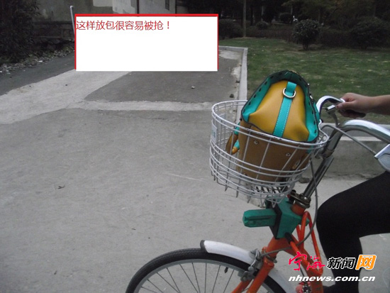 天气暖和起来,骑车出门的人多了。大街小巷随处可见骑着公共自行车和电动车的人,有些女士随意把皮包放在车兜里,这样,在骑车过程中也好,在还车刷卡的时候也好,很容易被不法分子瞄上。包损失事小,人摔伤更可怕! 在此特别提醒,大家别怕麻烦,要把包带套进车把,以免被抢! (网友“将心比心”播报) ![]() ![]() 包包这样挂着很不安全! ![]() |
