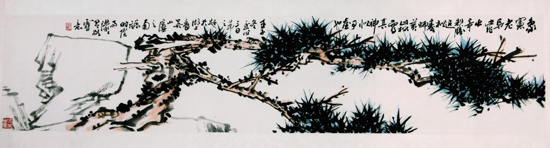 ![]() 一 翻阅《杨象宪书画集》(中国文史出版社,2010年),无意间发现一副联句,上曰:“金刚气质圭臬品”,不禁一愣,这不就是杨象宪的自述吗? 所谓金刚者,在梵语中言为一矿石,“出于金中,色如紫英,百炼不销,至坚至利,可以切玉。”(《大藏法数》卷41)故在佛教中又引喻如来之智慧,即秘密慧,“金刚无有法能破坏之者,而能破坏万物,此智慧亦尔。”(《〈大日经〉疏》卷12)而圭臬呢?测日影,正四时,可称准则或法度。看看杨象宪的书画作品及其中的艺术追求,所谓笔墨者,所谓传统者,一旦解之以“金刚气质圭臬品”,便让人恍恍然顿有所悟。这不仅在于可以“金刚”解释杨象宪用笔之意象,如潘天寿所期待的那样,“用笔忌浮滑。浮乃飘忽不遒,滑乃柔弱无力,须笔端有金刚忤乃佳。”(《论画残稿》),而更在于以“金刚”可比喻一种破解创新的精神,直接针对传统。那么,“圭臬品”是否又体现出他对传统的坚守?二者冲突吗?实则不然。在杨象宪眼中,传统绘画的价值标准始终是意境、气韵、格调,这三者恰恰都是以非常规的状态被不断拉升的,诸如“无人之境”、“气韵超常”或“格调超逸”,最后,都落实到笔墨与构图上。在种种开张性的布局中,造险或破险,险中出奇,奇中求正,是潘天寿的一贯做法,也是杨象宪的一贯作风。而这“造”或“破”或“出”或“求”,针对的便是一般性的原则,或者是常规标准,其无不需要“金刚钻”的精神,需要“金刚杵”的笔墨,需要浩然之气,需要人的精诚所至。 既守传统又力图以破之,是杨象宪一生的艺术追求。这应了潘天寿“有常必有变”的话,更应了李可染的那句名言:“用最大的功力打进去,用最大的勇气打出来。”但在杨象宪,这种常与变、进与出的关系,或者说,对待传统的一种态度被转换为对绘画品质的理解。品质,既可考量一位艺术家,又可考量一件艺术品。如何才是传统书画艺术的高品质?也许人言人殊,但至明末清初金石学派兴起,文人们亲历访碑,“登危峰,探窈壑,扪落石,履荒榛,伐颓垣,畚朽壤”(顾炎武《金石文字记·序》),那些长期暴于村野的汉魏碑版,骤然间受到宠爱,并在书画界引发出新的趣味,即“古拙朴茂”。碑刻字迹的生涩峭厉,错综变化,不衫不履,有着自然韵度,不仅让那时的书画家关注到结体用笔问题,更关注形意间的趣味,讲法度,重姿态,由此涉及品格,并反思明清之际流行的秀美书风,提倡自由与自主的精神。如傅山提出的“宁拙勿巧,宁丑勿媚,宁支离勿轻滑,宁率真勿安排”(《霜红龛集·作字示儿孙》),直指心性;再见八大,“放浪于形骸之外,佯狂于笔墨之间”;而石涛所谓“精雄老丑贵精神”,亦是同一个意思。扬州八怪中的金农,“储金石千卷”,好学癖古,其字却化篆为隶,苍古奇逸,自开生面。这种“复古以更新”的精神,经邓石如、包世臣下及清末民初的康有为与吴昌硕,直至现代的潘天寿,再到其弟子杨象宪,皆一脉相承。而所谓“复古”者,即返回汉魏,寻求古意,而其拙者,便在金石篆刻。如在书法用笔的问题上,潘天寿曾建议从汉隶入手,因“汉碑圆笔中锋、平稳方正,易于遵循而少流弊故耳。”(《听天阁画谈随笔》)尔后,再以圆笔学方笔,转向魏碑。杨象宪的书法,与此几近一致,如其大幅联句;而其绘画的用笔用线,也与此几近一致,即刚正、挺拔、俊逸、遒劲。 |