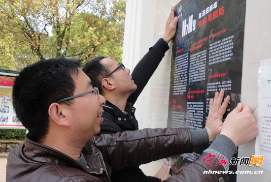 宁海新闻网讯 连日来,跃龙街道滨溪社区在辖区宣传栏、菜场等人员密集地张贴关于预防禽流感病毒的宣传海报,提醒广大居民增强防范意识。 (姚亮林应摄)