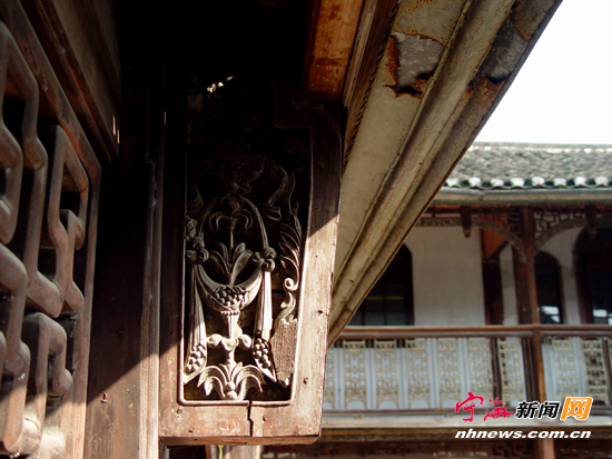 除了建筑外形外,顾宅的内外装修也是中西合璧的风格。 首先是它的门窗。所有中国传统的格子门窗,一律嵌以国外进口的彩色玻璃。据说这些玻璃都是顾鸿章亲自拼装的,为此他还累得大病一场。在线条简洁、风格明朗、有西方教堂特色的门窗细部,有很多雕刻非常精细的木雕构件,如牛腿、雀替、斗拱等等,还有狮子、凤凰、蚱蜢、蜻蜓这样的刻作。据说这些都是顾鸿章亲自打好样后,由工匠们精心雕刻而成的。 其次是它的地板。除了和其他中式住宅相同的木地板外,顾宅正屋的中堂和东西厢房的小堂前均用进口的水泥地砖铺设。地砖以红色为底,蓝色的花边内饰以乳白色花纹,图案有鲜明的西洋特色,虽然过了近百年,至今仍鲜艳如新。西式的水泥砖地同中式的中堂屏壁(八扇屏风现均已不存),以及据说是国民党高级将领谭延恺亲笔题写的“吉庆堂”匾和谐地统一在一起,别有一番风味。再是它的庭院和走廊的铺地。庭院用两尺见方的本地石板呈菱形铺设,一楼走廊则用宽窄不一的红色石条铺成。庭院和走廊共用石板一千多块。和别的中式石板道地不同的是,顾宅的道地四周都浇注着水泥,很好地固定了石板的位置。如今石板缝中虽见青青小草,但整个道地依然光滑平整。 二楼有1.2米宽的木板走廊,走廊上设西洋图案的绿色铁制栏杆,它和二楼的弧形门窗一起,营造了一种浓郁的异国风情。 三合院的正南是高2.5米的围墙,墙上砌五扇漏窗,每扇由九块淡绿色花格釉瓷砖组成。透过漏窗,我们可以看到顾宅占地约400平方米的花园。花园的东首建有一座长7米、宽4米、深2米的长方形鱼池,鱼池四周由石栏杆围起来,其中西面有数级石阶直抵池底。池中的游鱼,使人可以想见当年波光春影、鸟语花香的迷人景致。在花园的西首则建有一座四柱六角形攒尖顶凉亭,阳光下绿树掩映,有蝶翩跹其间。 |
